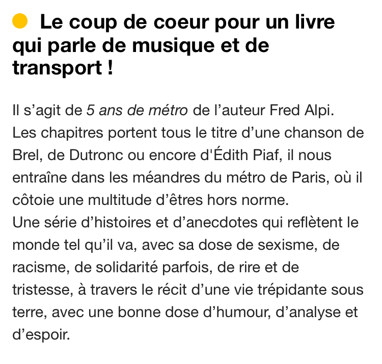 Radio Lez'art pour parler de Cinq ans de métro.