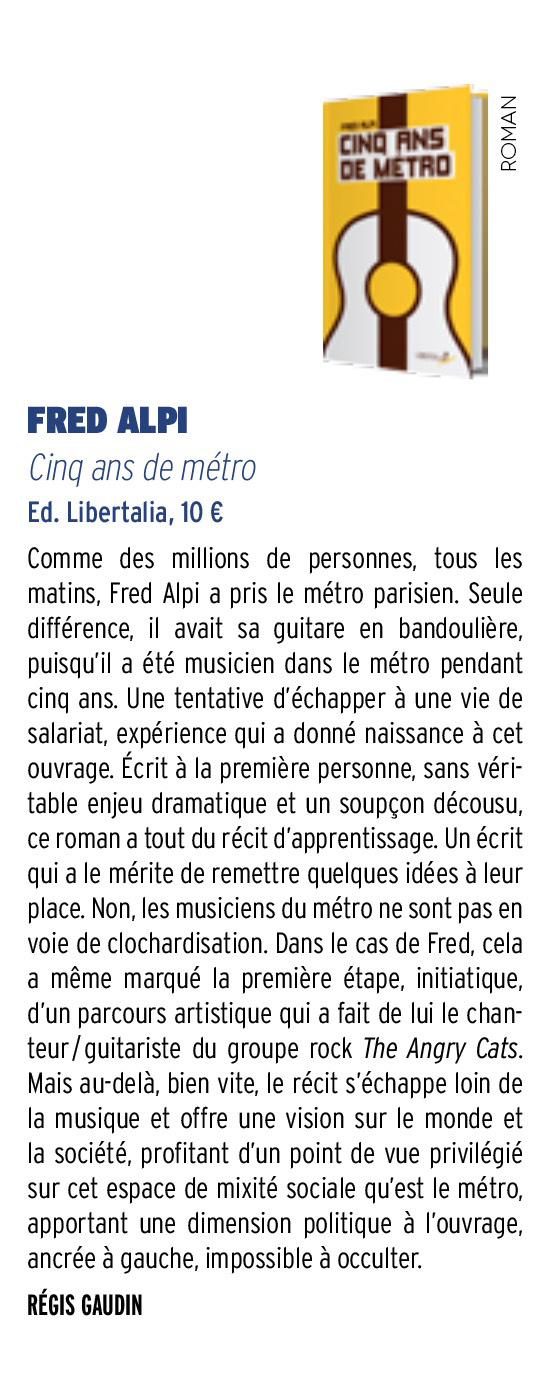 "Tranche de vie d’un artiste au rock bien chevillé au corps, 5 ans de métro revient sur l’expérience sub urbaine de Fred alpi, aujourd’hui chanteur et guitariste du groupe The Angry Cats."